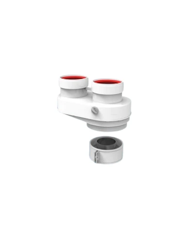 El Adaptador Biflujo Ø 80 mm es un componente esencial para la correcta instalación de sistemas de calefacción y calentadores murales, especialmente aquellos que son estancos y de bajo NOx. Este adaptador permite la conexión segura y eficiente de los conductos de salida y entrada de aire, optimizando el flujo de gases y garantizando un funcionamiento seguro y eficiente del aparato. Con unión Hembra / Macho.