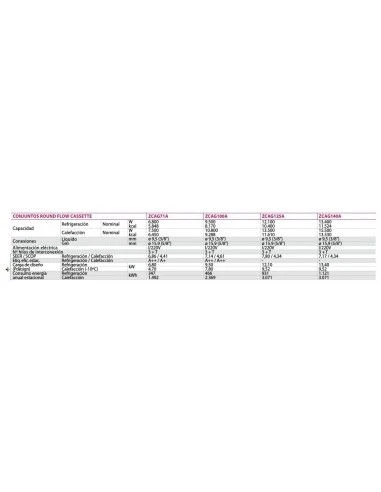 Características principales del Aire Acondicionado Cassette Daikin modelo ZUAG125A