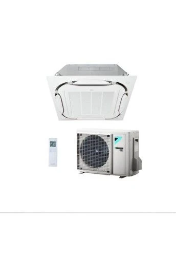 El Conjunto de Aire Acondicionado Cassette modelo CASG35B, en particular, está compuesto por la unidad interior FCAG35B y la unidad exterior RXM25R9. Este conjunto proporciona una potencia de 3.50 kW en refrigeración y 4.2 kW en calefacción, ofreciendo un rendimiento eficiente tanto en verano como en invierno. Además, incluye un mando BRC7FA532F y un panel BYCQ140E, que garantizan un control intuitivo y conveniente de todas las funciones del sistema.