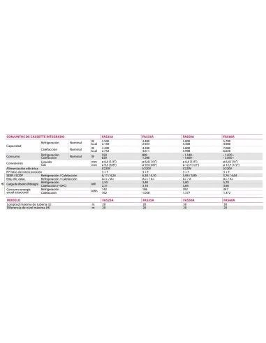 Características técnicas del Aire Acondicionado Cassette Sky Air Inverter modelo FAS60A