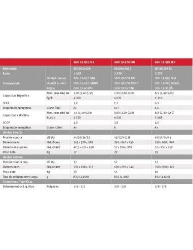- Alta eficiencia energética: Etiquetado energético estacional hasta Clase A++ en modo frío y A+ en modo calor