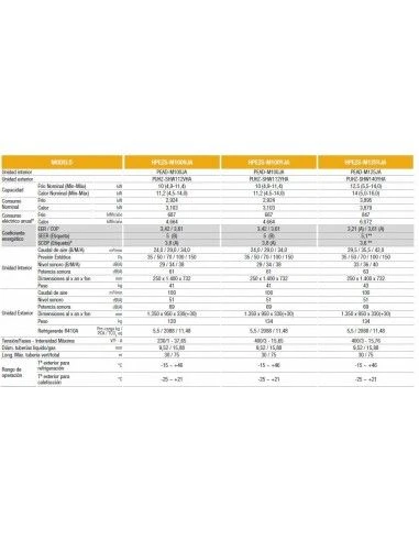 Características técnicas del aire acondicionado por conducto modelo HPEZS-M100YJA2