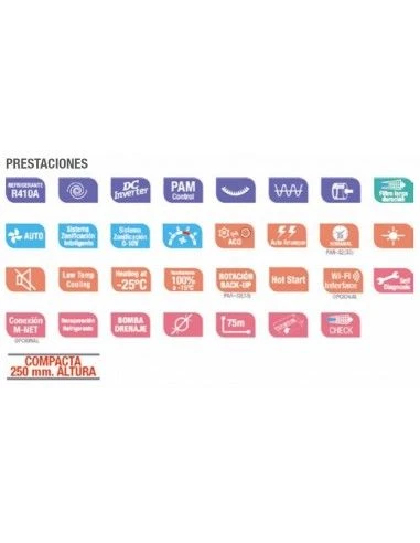 - Bomba Drenaje: La bomba de drenaje facilita el desagüe de la unidad interior. Se especifica como incluido u opcional en cada caso.