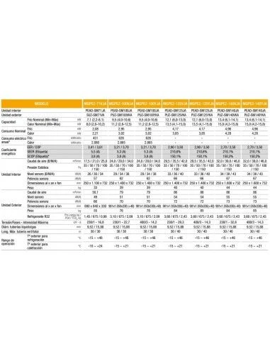 Características técnicas de los aires acondicionados Conductos MGPEZ-140YJA