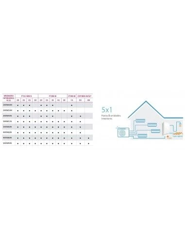 Una sola unidad exterior puede refrigerar o calentar toda una casa, oficina o tienda pequeña en distintos momentos. Se puede disfrutar de una temperatura agradable mientras se trabaja en el despacho por la tarde, así como de una temperatura constante en el salón y de dormitorios frescos por la noche. Gran ahorro energético gracias al uso de las últimas tecnologías: compresor SWING, motor reluctante DC Inverter y control PAM.