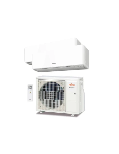 El Split 2×1 ASY3525U11MI-KM está compuesto por dos unidades interiores con potencias en frío de 2.5 kW y 3,5 kW, y en calor de 3.2 kW y 4 kW. Por su parte, la unidad exterior posee una potencia frigorífica de 5,0 kW. Este Split de Fujitsu es muy silencioso y están preparados para climatizar dos estancias de aproximadamente 21 metros2 y 30 metros2. La salida de aire se realiza de manera vertical, evitando las corrientes directas de aire hacia las personas presentes en la habitación.
