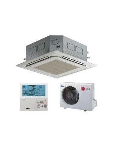 Conjunto de Aire Acondicionado LG mediante Cassette Inverter, de tensión monofásica. Este Aire Acondicionado LG Cassette CT12 + UU12W ha sido diseñado para ofrecer la solución inverter más competitiva. Su lama de salida de aire más ancha, mejorando su diseño reduce los ángulos muertos y proporciona una mejor distribución del aire y de la temperatura. El control automático del ángulo de salida para que cada lama pueda controlarse de forma independiente, la unidad dispone de un motor en cada una de ellas. El control del ángulo de salida satisface tanto a los usuarios que prefieren una corriente directa como a los que desean una indirecta, reduciendo además la corriente de aire frío.