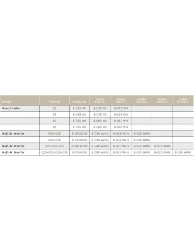| Función termostato en el mando inalámbrico | Hot start | Inverter DC | Válvula de expansión electrónica | ||||