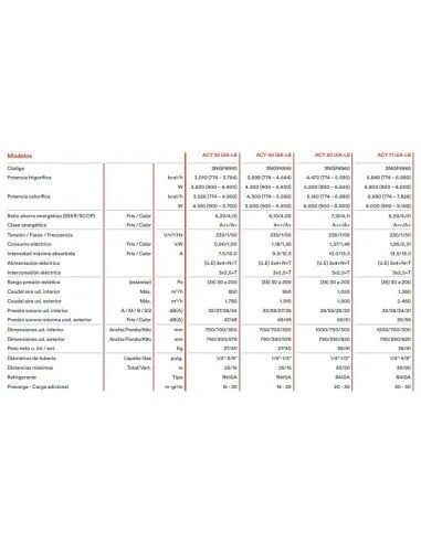 Características técnicas del Aire Acondicionado por Conducto modelo ACY 40 UiA-LB