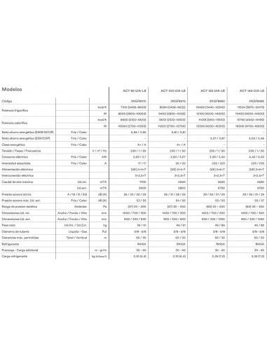 Características técnicas del Aire Acondicionado por Conducto modelo ACY 80 UiA-LB