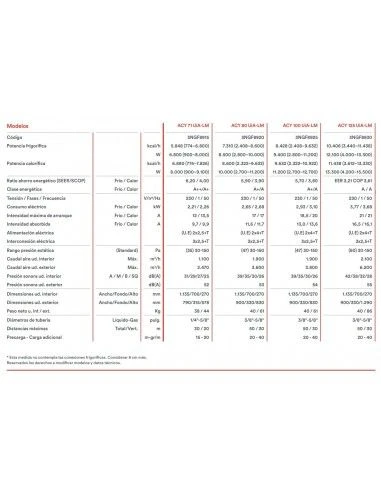 Características técnicas del Aire Acondicionado por Conducto modelo ACY100UIA-LM