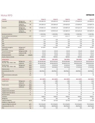 Especificaciones Técnicas del aire acondicionados Split Hitachi Mokai 25