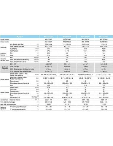 Características técnicas de los aires acondicionados Split MSZ-EF35VG-S
