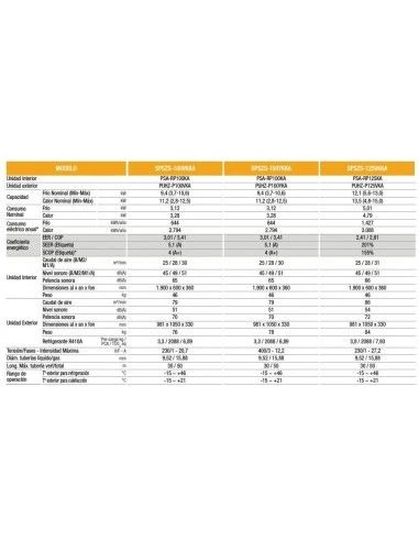 Conjunto de Aire Acondicionado Split Columna modelo SPSZS-100VKKA de una potencia térmica de 9.4 kW y 8084 frigorías, de tensión monofásica, ofrece la posibilidad de realizar una rápida y fácil instalación. Además al tener solo 360 mm de profundidad ocupa muy poco espacio.