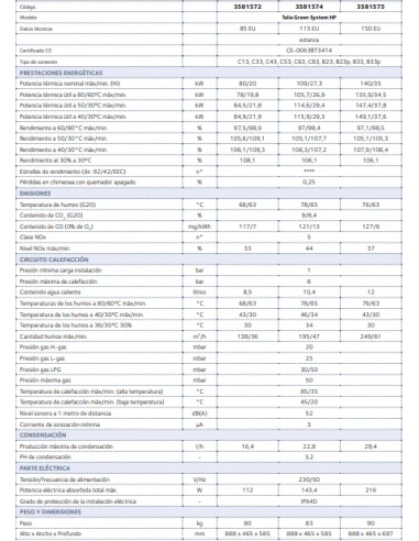 Características de la Caldera a gas Chaffoteaux Thalia Green System HP 115