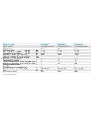 La Caldera mural de condensación, Sólo calefacción, a gas de 24 kW de la Marca Daikin, modelo D2TND24SET es la pequeña de su clase. El Intercambiador de calor de condensación TOTAL equipado con la tecnología e I+D de Daikin, fabricado en fundición de Al-Si-Mg (aluminio ) para garantizar la ligereza y elevada resistencia a la corrosión.