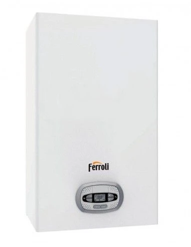 Caldera mural mixta instantánea de condensación de la marca Ferroli BLUEHELIX PRO RRT SLIM. La gama cuenta con modelos de 24 a 32 kW de potencia. Son calderas de microacumulación aptas para producción de agua caliente instantánea y calefacción; ecológicas, no contamiantes, emiten una menor cantidad de de CO2 y de NOx, con un 80% menos de NOx que una caldera estandar. Está disponible en varios tipos de gas: gas natural y gas propano. El modelo SLIM está catalogado como la caldera de condensación más pequeña del mercado al ser de fondo reducido. Bomba de alta eficiencia energética incluida.