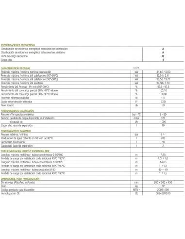 - Rango de modulación de potencia útil en calefacción: 3,5/34,6kW