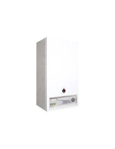 | La Caldera mural eléctrica para calefacción E-Tech de ACV, con una potencia térmica de 22 kW, tensión trifásica. Es una Caldera para calefacción que esta disponible en varias potencias desde 9.0 kW hasta 36 kW. En los modelos E-Tech de ACV, el cuerpo de caldera fabricado en acero con bloque de resistencias desmontables fabricadas en acero inoxidable Incoloy 800. También elegante presentación con envolvente metálico y pintado con epoxi en blanco y el panel de mandos completo, incluye, interruptor general, termostato de regulación, termohidrómetro, seleccionador de potencia. Totalmente equipada con un vaso de expansión de calefacción de 10 litros, manómetro, válvula de seguridad,presostato de falta de agua,Bomba electrónica de calefacción, y purgador automático. Dispone de 2 etapas de modulación de la potencia en función de la demanda de calefacción. El circuito de control está protegido por un disyuntor de circuito magnetotérmico. |