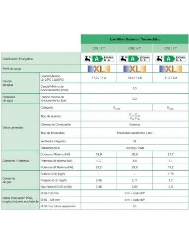 Calentador a gas Cointra CPE -17 T n Low NOx, estanco, termostático, tecnología inverter, sin piloto y encendido electrónico por red eléctrica, eficiencia A, perfil de carga XL