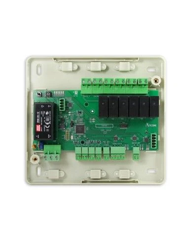 La Central de control de producción Airzone AZX6CCP hasta 32 sistemas con dimensiones 180x195x55,5mm se debe montar en superficie, es un equipo diseñado específicamente para el control de las unidades de producción a través de 6 relés de 10A a 230Vac. La comunicación se realiza mediante bus domótico, este es un dispositivo de alimentación externa.