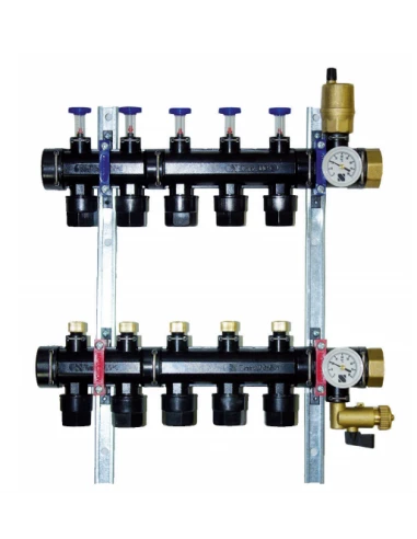 - Colector Plástico Modular Eco Suelo Radiante CABEL con caudalímetros 8 vías 1”