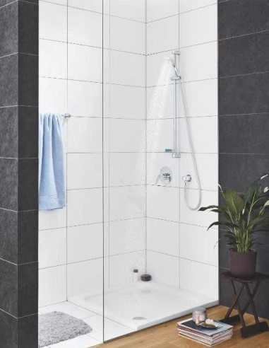 Todo lo que necesitas para una ducha perfecta! Todo lo que tienes que hacer es relajarte y disfrutar del clásico chorro Rain de Grohe, que es tan relajante como la lluvia de verano. El elemento deslizante facilita el ajuste de la altura y el ángulo de la ducha. Y está repleto de tecnología de punta. Grohe DreamSpray garantiza que el flujo de agua de cada boquilla sea equilibrado y uniforme.