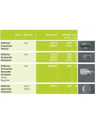 Deflector evacuación vertical de Inox Fig 8DFV4, diámetro 80, aparatos de condensación, instalación individual y colectivas en interior