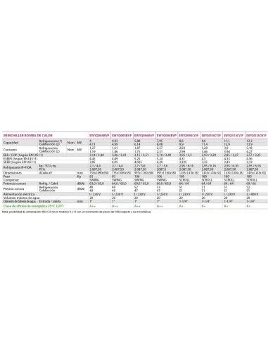 - Rango de potencias: EWA(Y)Q-BVP 4-7,95 kW. y EWA(Y)Q-AC 8,6-13,3 kW.