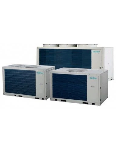 Daitsu cunta con una nueva gama de unidades aire/agua inverter modular con eficiencia energética A+. Los 3 modelos (30 kW, 60 kW y 90 kW) son capaces de combinarse hasta un máximo de 16 unidades y alcanzar una potencia máxima instalada de 1.440 kW.*