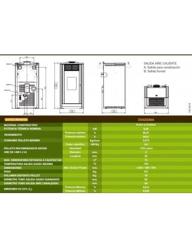 - Potencia térmica de hasta 9.05 kW