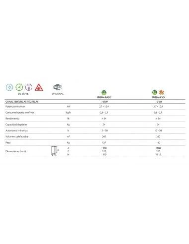Características principales de las Estufas de pellets Lasian Prisma Basic 10 kW