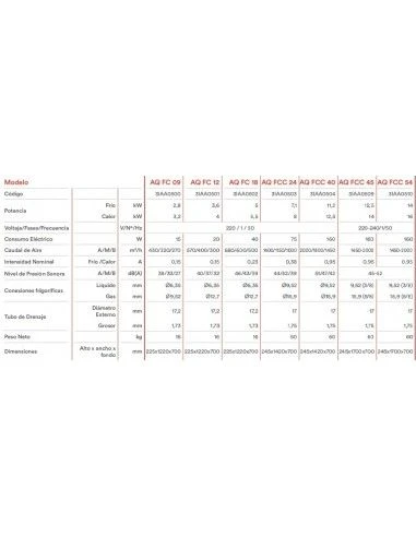 Fan Coil Aquatermic Suelo AQ FC 09, potencia 2.8 kW, 2408 frigorías, gas R410A, caudal de aire 600 m3/h, 35 dB