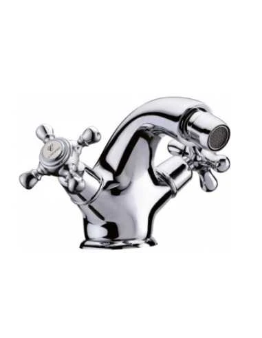 Grifo de bidé bimando Clever With2 Antigona 75mm, cromado, manetas redondeadas, giro 90°, desagüe no incluido.