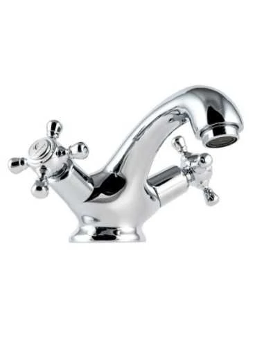 Grifo de lavabo bimando Clever With2 Antigona 65mm, cromado, manetas redondeadas, giro 90°, desagüe no incluido.