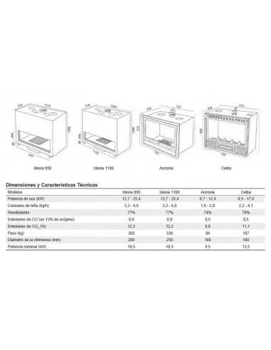 Idesia 850 con aro embellecedor es un insertable a leña de Clase de Eficiencia Energética 1. Con un rendimiento del 77% quiere decir, que del poder potencia calorífica obtenida al quemar la leña, se aprovecha el 77% para calentar la vivienda, directamente por radiación e indirectamente por convección, a través del las paredes del insertable o del aire impulsado al ambiente o ambientes adyacentes por el ventilador, o en menor cantidad por conducción a través de las paredes el hogar del insertable. Las dimesiones recomendas del combustible (leña) es de 500 mm de longitud.