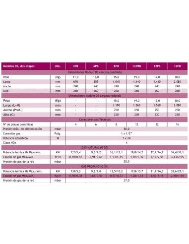 - Modelos de 4 a 16 placas cerámicas