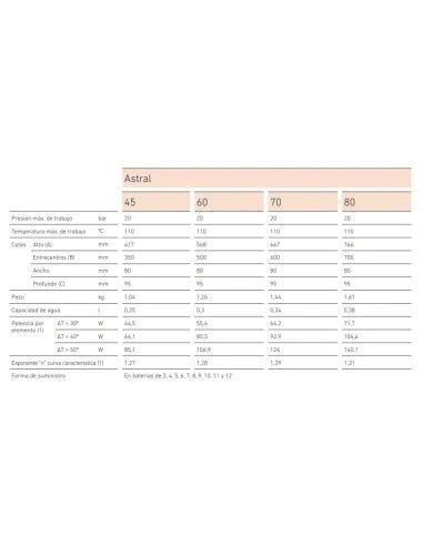 El diseño del radiador Baxi ASTRAL 80 da prestigio por la elegancia, valor y calidad de su diseño de frontal plano, que se adapta a los gustos más modernos y a las necesidades de diseño de interiores, manteniéndose a la vanguardia de la manera más discreta. Este Radiador de aluminio Baxi Astral 80 de 7 elementos es de fácil mantenimiento, gracias a la simplicidad en el diseño de sus laterales y el frontal plano, facilitan al máximo la limpieza de posibles residuos de polvo. Disponible en 4 modelos de 45, 60, 70 y 80 y suministrado en baterías de 3 a 12 elementos.