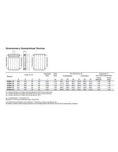 El Radiador de aluminio modelo Dubal 45 permite su instalación con frontal plano o con aberturas. Este modelo Dubal 45 está formado por 3 elementos acoplables entre sí mediante manguitos de 1″ rosca derecha-izquierda y junta de estanquidad. Los elementos son fabricados por inyección a presión de la aleación de aluminio previamente fundida.
