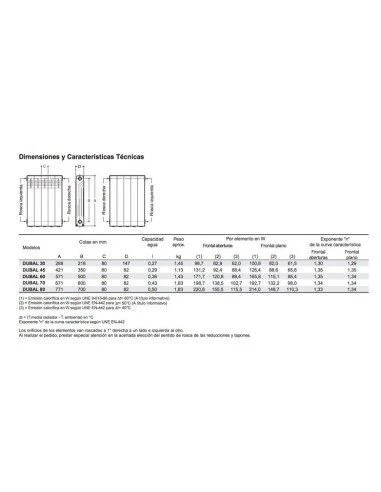 El Radiador de aluminio modelo Dubal 45 permite su instalación con frontal plano o con aberturas. Este modelo Dubal 45 está formado por 4 elementos acoplables entre sí mediante manguitos de 1″ rosca derecha-izquierda y junta de estanquidad. Los elementos son fabricados por inyección a presión de la aleación de aluminio previamente fundida.