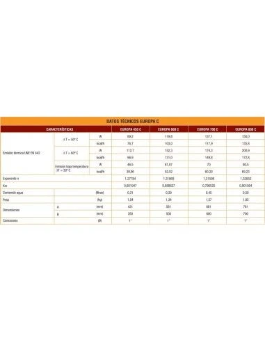 El confort térmico que brindan los elementos para radiadores EUROPA C de la marca Ferroli es el objetivo más importante de un sistema de calefacción eficiente. Los radiadores por agua caliente proporcionan una temperatura homogénea en cada estancia además de constante en el tiempo. Fabricados en la fábrica Ferroli de Burgos, con la tecnología más actualizada y un riguroso control de fabricación que permite garantizarlos durante diez años. Su agradable estética, su diseño plano y sin aberturas, haciendo innecesario el uso de cubrerradiadores, que obligan a sobredimensionar las instalaciones.