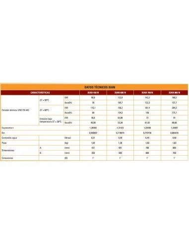 - Emisión térmica UNE EN 442 ΔT = 60 ºC: 115,1 W – 99 kcal/h
