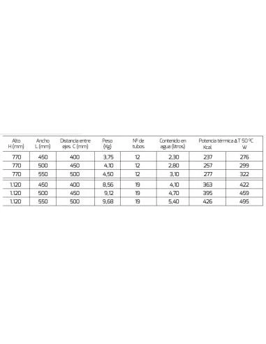 - Versión cromada potencia térmica -30% aprox. respecto al radiador blanco