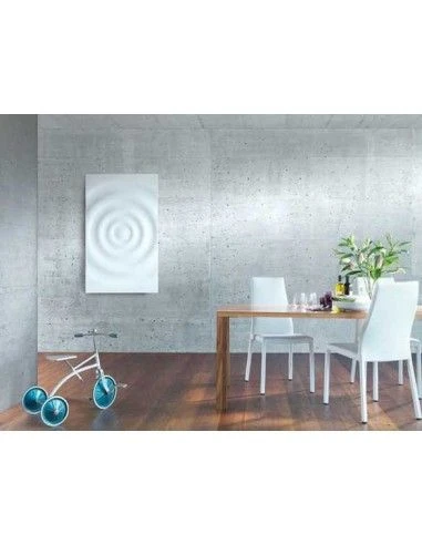 Una obra de arte exclusiva: Runtal Splash, resultado de la inspiración artística de Christian Ghion y de largos años de investigación sobre el Corian®, material que ha revolucionado el lenguaje del diseño. El motivo de círculos concéntricos transmite una sensación de bienestar que amplifica el reconfortante calor de un radiador eléctrico que cumple los últimos estándares EcoDesign.