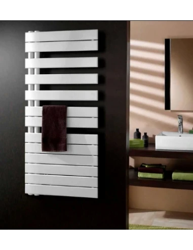 Radiador Toallero Zehnder Rosa Spa Asym, versión de uso doble: agua caliente y mixto, acabado Blanco RAL 9016, ideal para instalaciones de baja temperatura