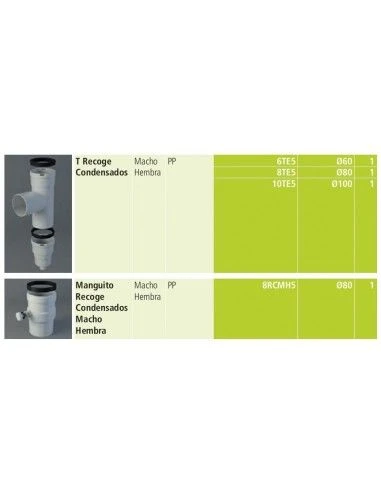 T recoge condensados de polipropileno extrusionado Fig 10TE5, diámetro 100, unión Macho/Hembra, blanco, aparatos de condensación, instalación individual y colectivas en interior
