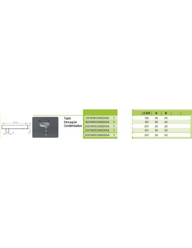 Tape desagüe condensados de polipropileno extrusionado Fig 125TAPECONDENSA, diámetro 126, blanco, aparatos de condensación, instalación individual y colectivas en interior