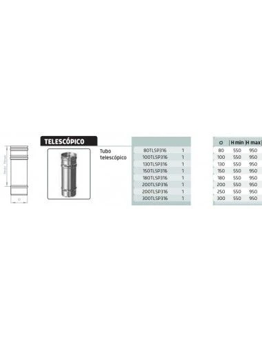 Tubo telescópico de acero inoxidable 316 Fig Ø 80, para calderas simples, colectivas, vertical, instalación exterior