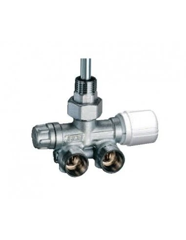 Válvula MONO-BITUBO termostatizable derecha escuadra cromada con racor y tuerca